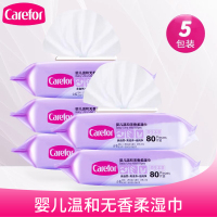 爱护婴儿湿巾无香棉柔卫生湿纸巾带盖80抽*5包新生儿宝宝幼儿洁净