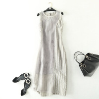 原创高端女装新款欧美时尚复古丝麻气质圆领连衣裙