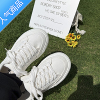 SUNTEK卷毛高厚底小白鞋女2023新款夏季黑白色百搭帆布鞋配裙子板鞋学生