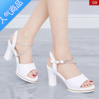 SUNTEK紅綪綎鱼嘴凉鞋女2023夏季新款中跟粗跟女鞋白色配裙子后空高跟鞋