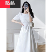 YIBUSHENG法式方领白色连衣裙女季2024新款褶皱高级感气质收腰显瘦长裙子