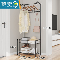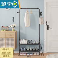 敬平晾衣架落地衣帽架多功能多层收纳架卧室内学生宿舍收纳置物一体架 2层-时尚黑