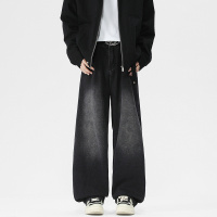 宽松直筒港风牛仔裤男基础款百搭多色松紧水洗拖地裤垂感显高显瘦