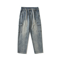 宽松直筒港风牛仔裤男基础款百搭多色松紧水洗拖地牛仔裤男生