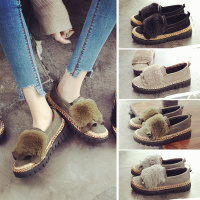 2017秋冬新款百搭毛毛鞋英伦时尚毛球一脚蹬平底鞋保暖加绒棉鞋女