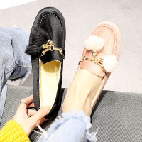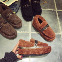 秋冬季毛毛鞋女保暖豆豆鞋女加绒韩版平底单鞋加厚棉鞋学生鞋女鞋