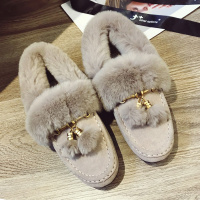 33翻毛牛皮兔毛吊穗豆豆鞋女冬季保暖加绒毛毛鞋韩版真皮平底棉鞋