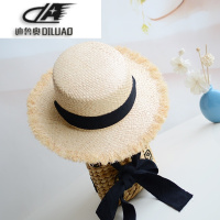 毛边拉菲草帽女夏小清新遮阳防晒海滩边太阳帽绑带帽子平顶帽瘦脸