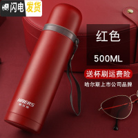 三维工匠保温杯500 真空不锈钢男女子水杯学生儿童杯车载便携 暖红色500+送杯刷