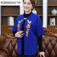 妈妈装秋装蝙蝠袖开衫上衣中老年针织绣花小外套中年女装冬装外衣
