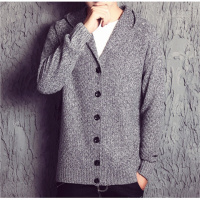 2017秋冬新品男式针织开衫时尚修身小外套V字领韩版休闲大气毛衣灰色