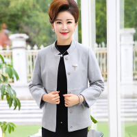 妈妈秋冬短款毛呢小外套中老年女装呢子夹克开衫上衣纯色修身