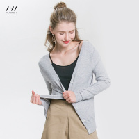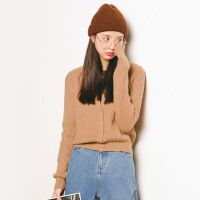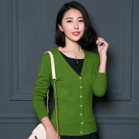 秋季新款V领羊绒开衫女修身针织衫纯色羊毛衫短款韩版长袖小外套