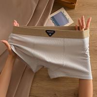 纹里莫代尔男士平角内裤纯色莱卡棉裸感透气舒适男生四角短裤