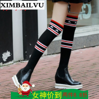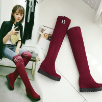 长筒靴平底内增高2017秋冬新款厚底坡跟过膝靴绒面瘦腿弹力靴百搭
