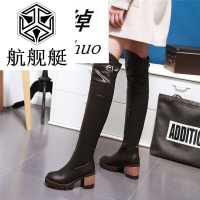 品牌女鞋2017秋冬新款羊反绒弹力过膝靴粗跟瘦腿高筒靴AX15019黑色