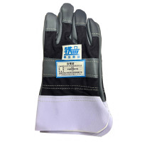 手指带皮帆布手套