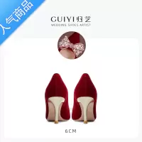 SUNTEK婚鞋红色新娘鞋秀禾服蝴蝶结高跟鞋珍珠敬酒服不累脚中式新款尖头