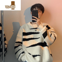 YANXU韩系慵懒风毛衣男秋季穿搭感黑白拼色外套日系复古情侣毛线衣