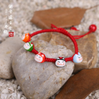 【猫舍道乐堂本铺】日本正版红绳招财猫手链 本命年女编织情侣