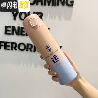 三维工匠保温杯女可爱森系水杯个性创意男学生水瓶潮流简约清新ins茶杯子 轻辰粉蓝幸运500(弹跳盖)