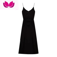 七斓黑色连衣裙女夏季西装内搭气质无袖小个子打底背心吊带裙套装大码