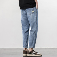 春秋浅蓝水洗牛仔裤 男士织带宽松锥形 工厂直供九分百搭长裤子