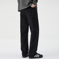 秋冬新款牛仔裤男士复古水洗针织宽松直筒美式休闲加绒长裤子