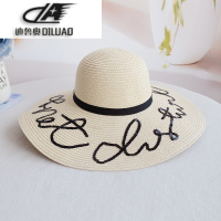 刺绣字母大檐草帽女夏天防晒海边沙滩度假遮阳帽安迪刘涛同款帽子