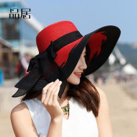 夏季新款帽子女丝带蝴蝶结大檐草帽户外旅游防晒遮阳帽沙滩太阳帽