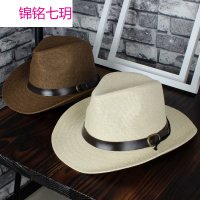帽子女夏天遮阳草帽沙滩度假韩版小礼帽出游太阳帽皮带扣爵士帽潮