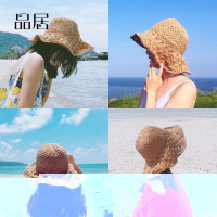 草帽女夏天沙滩遮阳防晒可折叠海边太阳帽子出游大草帽大沿遮阳帽