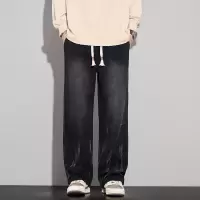 YANXU黑色牛仔裤男生2023新款男士宽松直筒阔腿裤休闲长裤子