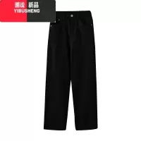 YANXU美式高街牛仔裤男新款直筒宽松潮牌阔腿裤男士黑色休闲长裤子