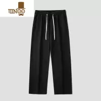 阔腿裤男美式复古高街秋冬季加绒加厚黑色抽绳针织休闲宽松直筒裤
