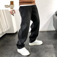 YANXU黑色牛仔裤男休闲潮流潮牌美式高街阔腿裤子ins宽松水洗长裤直筒