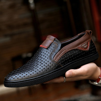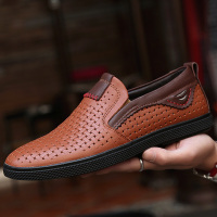 夏季时尚皮鞋男士真皮软面休闲鞋英伦透气牛皮鞋网眼镂空男鞋