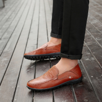 秋季潮鞋懒人鞋男真皮高端韩版商务豆豆鞋男士软底头层牛皮鞋_1