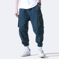 YANXU春季牛仔裤男生休闲宽松哈伦束脚裤日系潮牌印花痞帅学生工装裤子