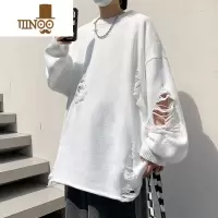 YANXU高街vibe风重工破洞白色毛衣男情侣慵懒风嘻哈潮牌宽松破坏感线衣