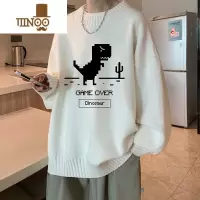 YANXU半高领毛衣男加厚潮牌宽松慵懒风线衣复古恐龙白色圆领针织衫