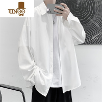 YANXU夏季长袖白色衬衫男潮牌小众发型师日系休闲痞风宽松衬衣外套