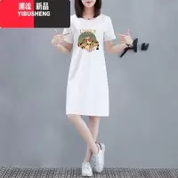 YIBUSHENG白色连衣裙宽松短袖长款t恤女裙子胖mm遮肚显瘦大码开叉长裙