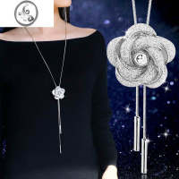 JiMi韩国时尚百搭简约气质花朵毛衣链长款装饰项链女秋冬衣服配饰吊坠