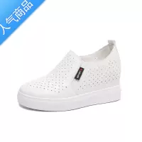 SUNTEK春夏镂空透气小白鞋女内增高厚底百搭一脚蹬网鞋坡跟单鞋休闲女鞋
