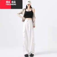 YIBUSHENG美式辣妹白色工装裤女季小个子薄款hiphop抽绳窄版直筒休闲裤潮