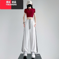 YIBUSHENG冰丝速干美式工装裤女季薄款2024新款束脚阔腿高腰休闲裤运动裤