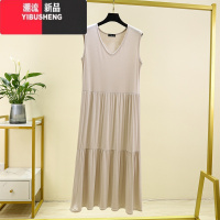 YIBUSHENG季薄款莫代尔V领连衣裙大码显瘦拼接蛋糕裙无袖背心裙内搭长裙
