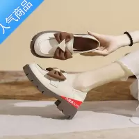 SUNTEK乐福鞋夏季新款复古白色厚底粗跟内增高蝴蝶结圆头英伦风小皮鞋女