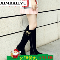 品牌欧洲走秀款过膝靴女弹力长靴瘦腿短靴真皮高筒靴平底女靴子马丁靴女松糕靴子时尚女士靴黑色